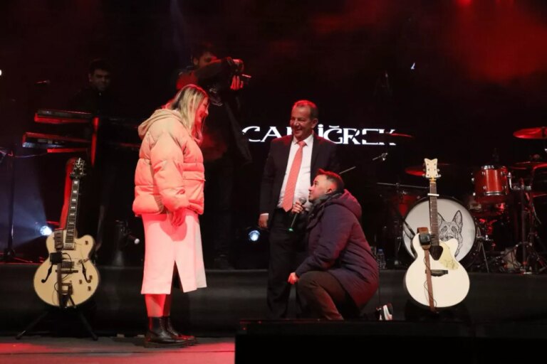 Konserde ayrıca, evlilik telifi sürprizi de yaşandı. Konsere gelen bir genç, Bolu Belediye Başkanı Tanju Özcan’ın yardımı ile sahneden kız arkadaşına evlilik teklifi etti. Binlerce kişinin alkışları ve tezahüratları eşliğinde diz çöküp kız arkadaşına “Benimle bu hayatı paylaşır mısın?” diye sordu. Genç kızın “Evet” cevabı üzerine çift büyük mutluluk yaşadı. Özcan da genç çifte sarılıp tebrik etti.
