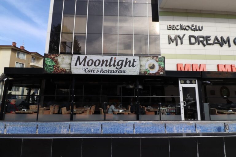 Yemeklerinden sıcak içeceklerine, personelinden iç dekorasyonuna itinayla önem veren Moonlight Cafe, kaliteden ödün vermeden misafirlerini ağırlıyor. İşletmeciliğini Murat Avcı’nın yaptığı sıcak, samimi ve eğlenceli bir mekan olan Moonlight, ailelerin ve gençlerin hoşça vakit geçirebileceği bir adres olarak hizmet vermeye devam etmektedir.